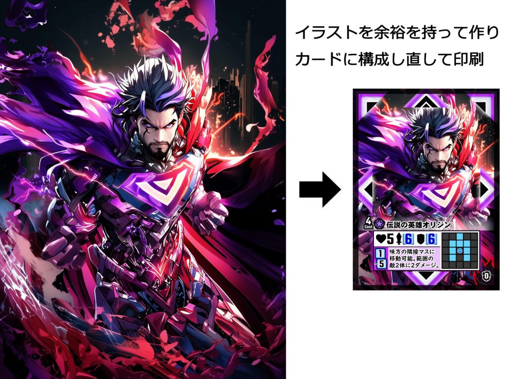- 縦横比は縦長であれば大丈夫です。カードに合成する際は丁度良く見栄えがするように調整させていただきます。そのため、多少余裕があった方が良いです。