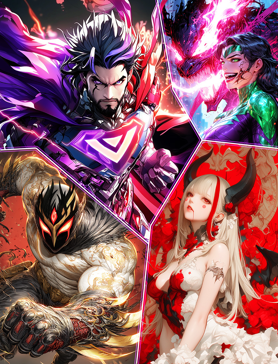 各陣営16体のキャラが選ばれます。各キャラは覚醒前と覚醒後の2つの姿があり、覚醒前後で違うクリエイターのキャラが採用されることもあります。