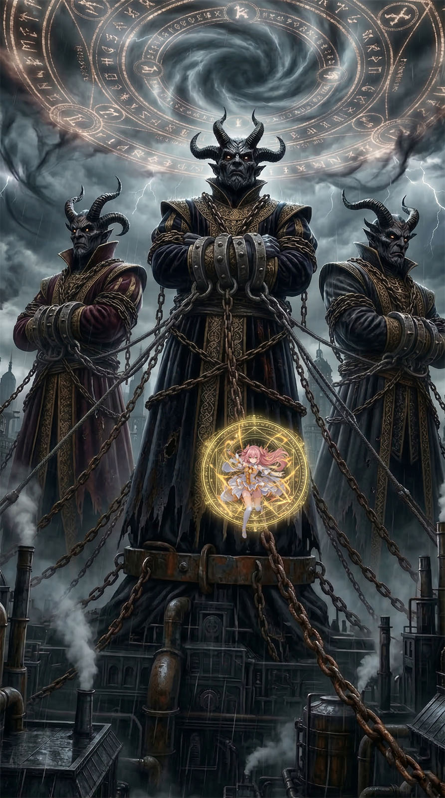 召喚された3体の巨大なデーモンの王が召喚される。ねねの最大出力による神の召喚である。