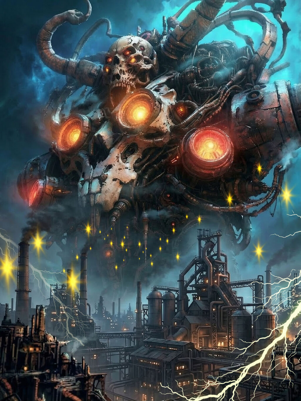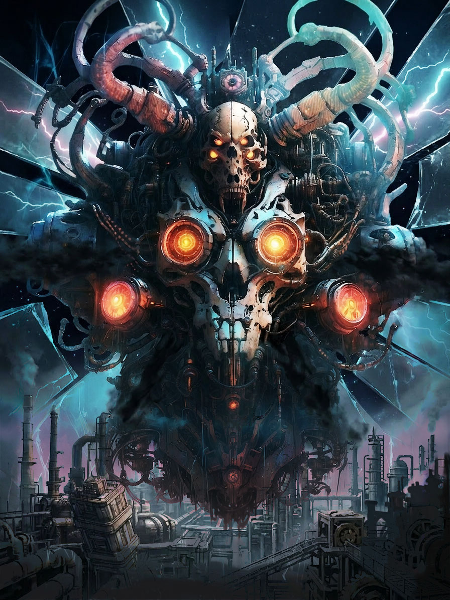 一瞬世界から光が失われた後『暗黒の機械の神』が浮遊していた。