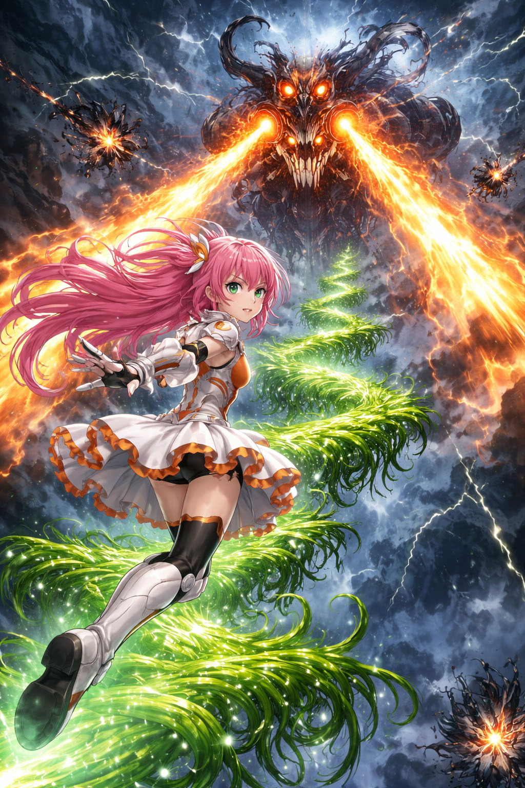 巨大な爆発と共に激しい光の衝撃がデーモンを貫く。自らのほとんどのエネルギーを錆びた体に残し巨大な爆弾と化していたのだ。