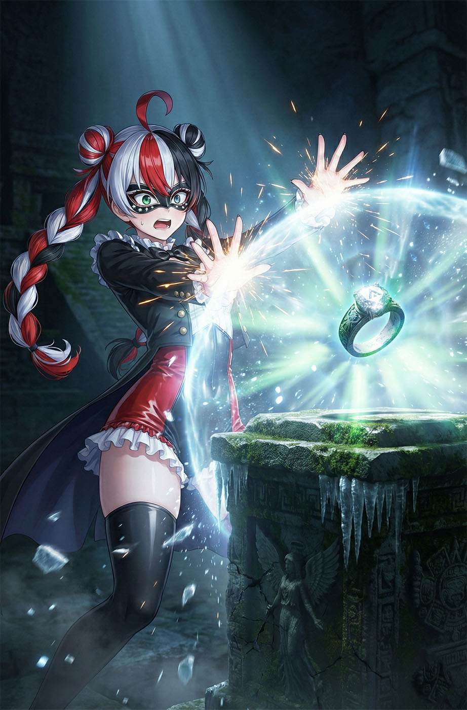 森の喧騒が嘘のように、遺跡の最深部は静寂に包まれていた。 かつて神々が座したとされる祭壇。その中央に、周囲の闇を払うほどの清冽な輝きを放つ「白の指輪」が鎮座している。