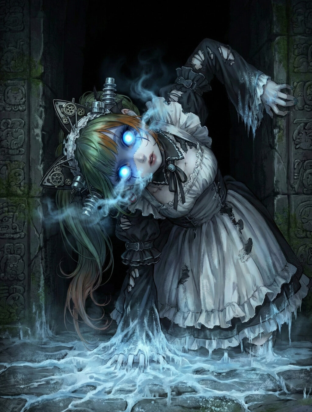 「……サフィラ、ではないわね」 リリが睨みつけると、闇からサフィラの姿をした「何か」が這い出してきた。首や腕を異様な角度に曲げたその瞳は、凍てつくような蒼い輝きを放っている。