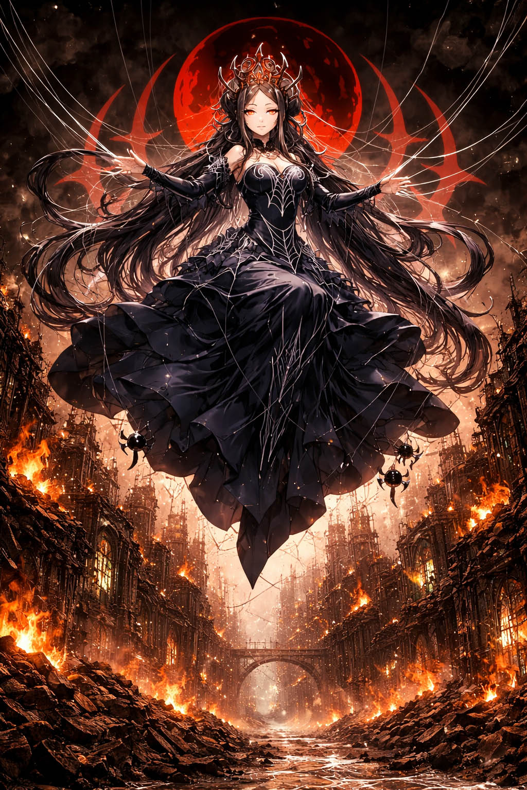 彼らを見下ろすように宙に浮いていたのは、不気味な黒いドレスを纏ったアメルダの刺客、黒魔術師アラクネだった。