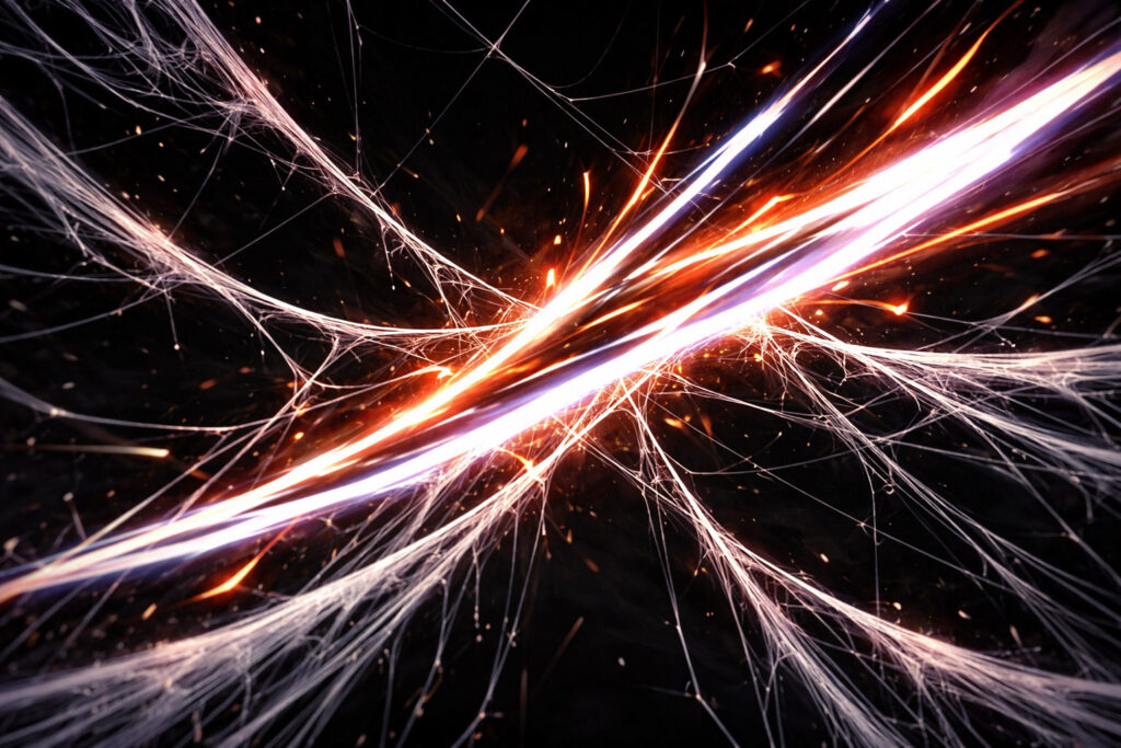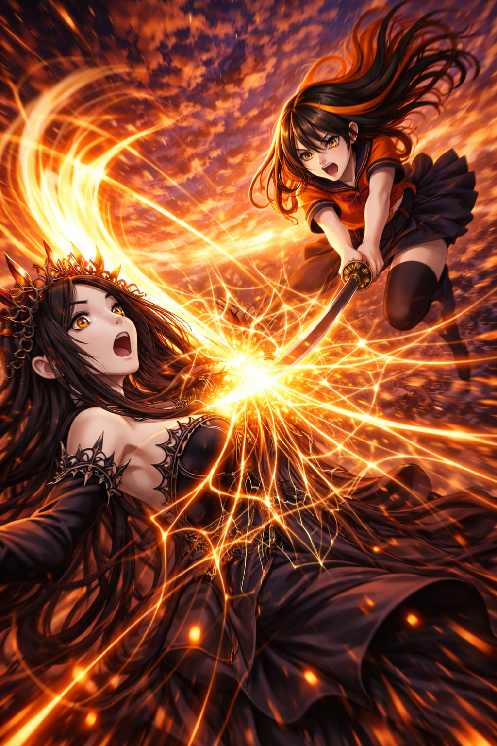 大地を砕くほどの踏み込みから放たれた渾身の一撃。蜘蛛の糸と斬撃が交差する。