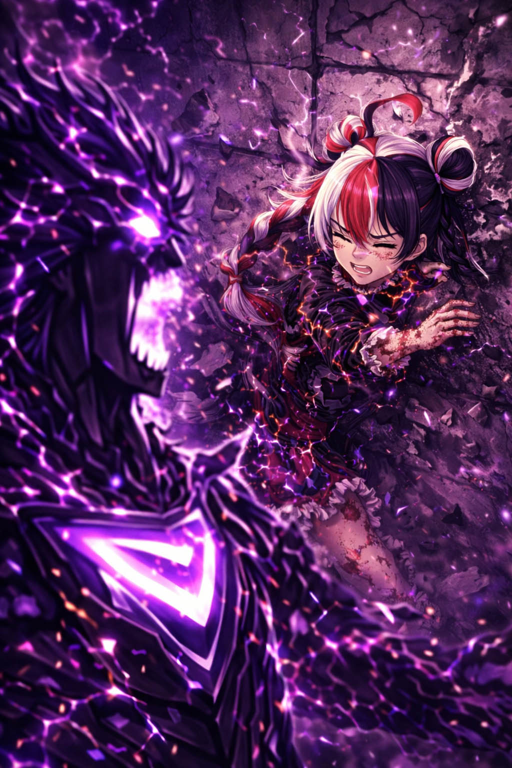 凄まじい暴風と圧力が吹き荒れる中、側近のリリが決死の覚悟で飛び込んだ。彼女は自らの身が引き裂かれるのも厭わずオリジンの腕にしがみつき、呪いに焼かれながらも強引に訴えかける。