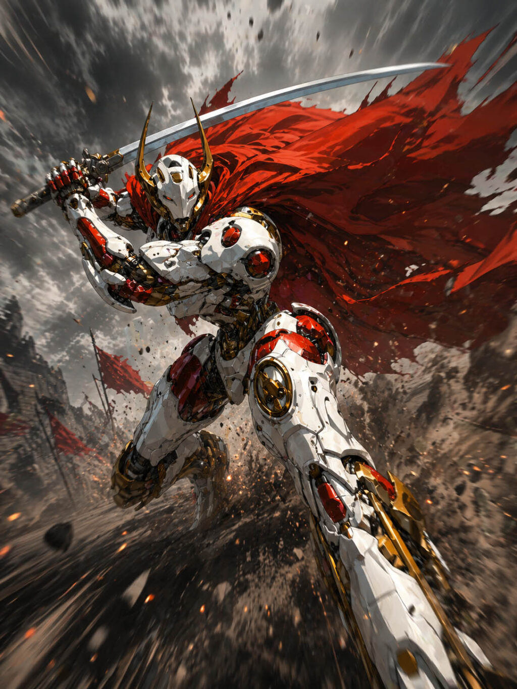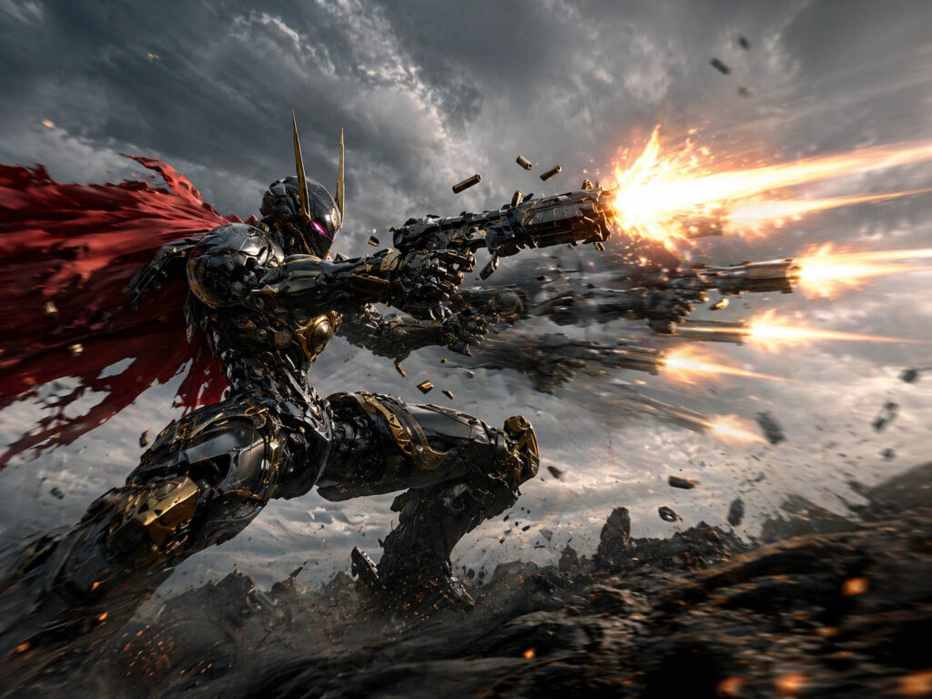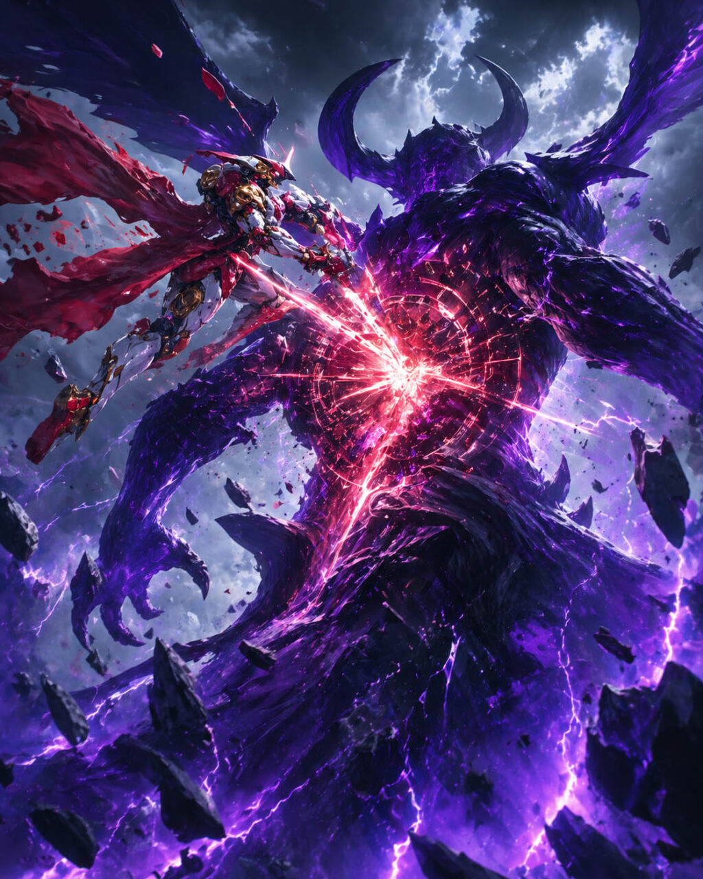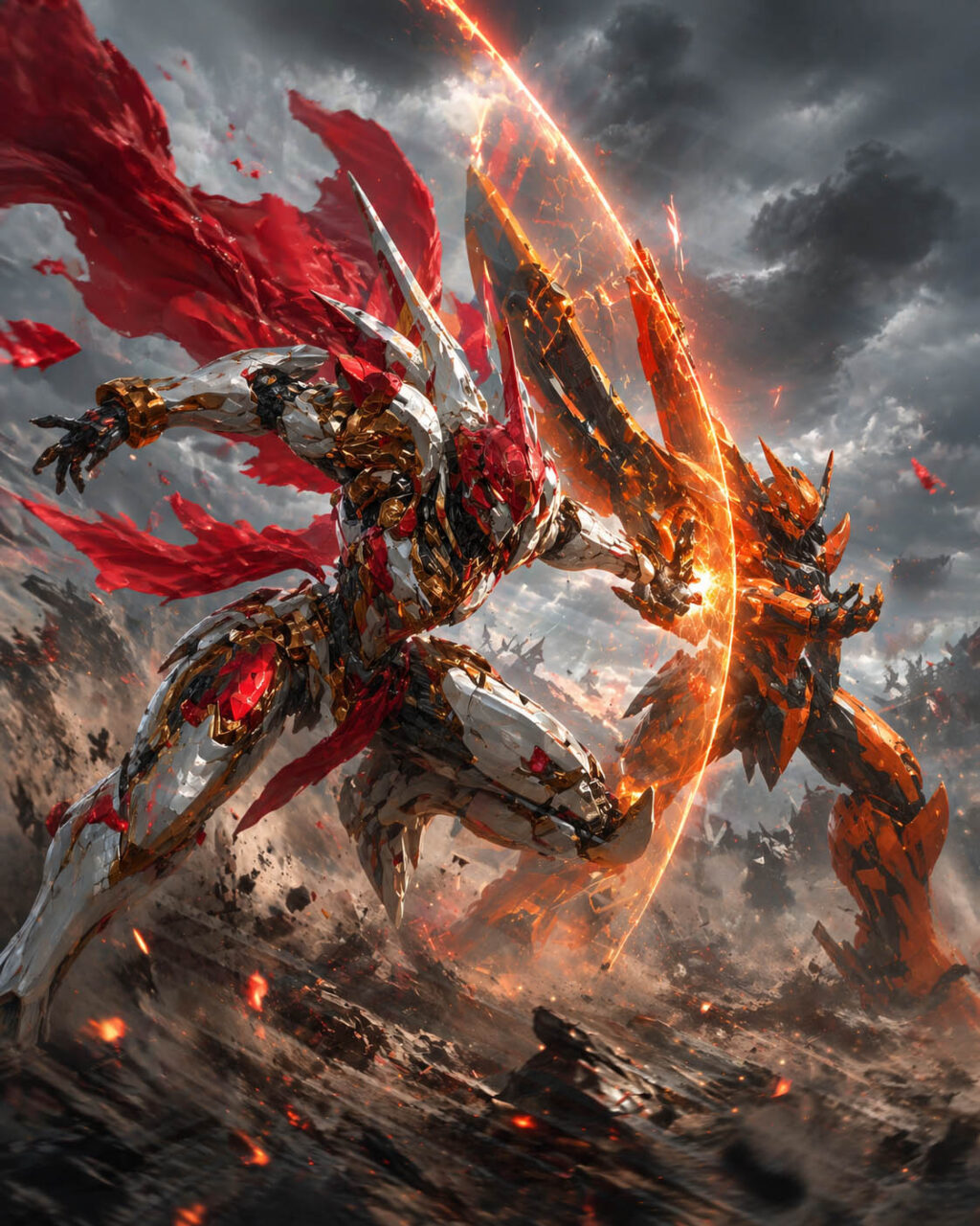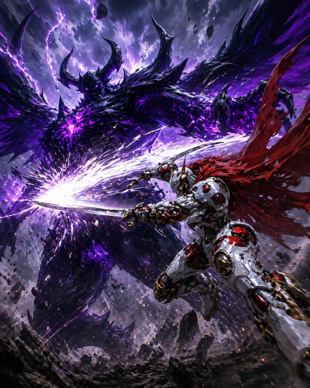 機神のエンジンが限界を超えて咆哮を上げ、覚醒のエネルギーが赤い復讐の炎へと染まっていく。彼女は大地を蹴り、その勢いのまま帝王オリジンへと突撃した。