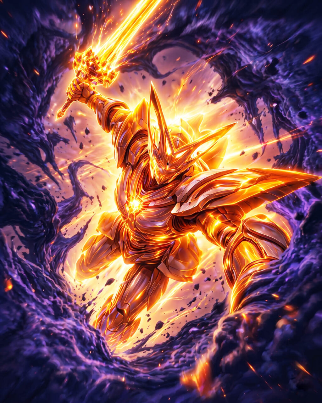 機神の巨大な剣が、空気を切り裂き、帝王に振り下ろされる。