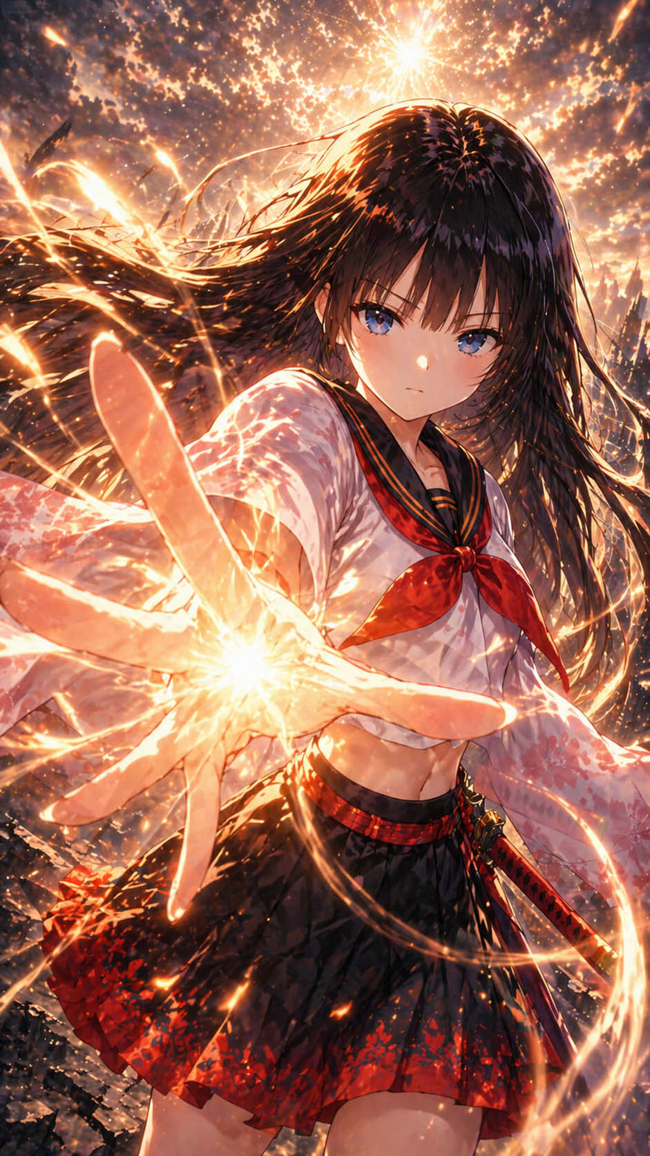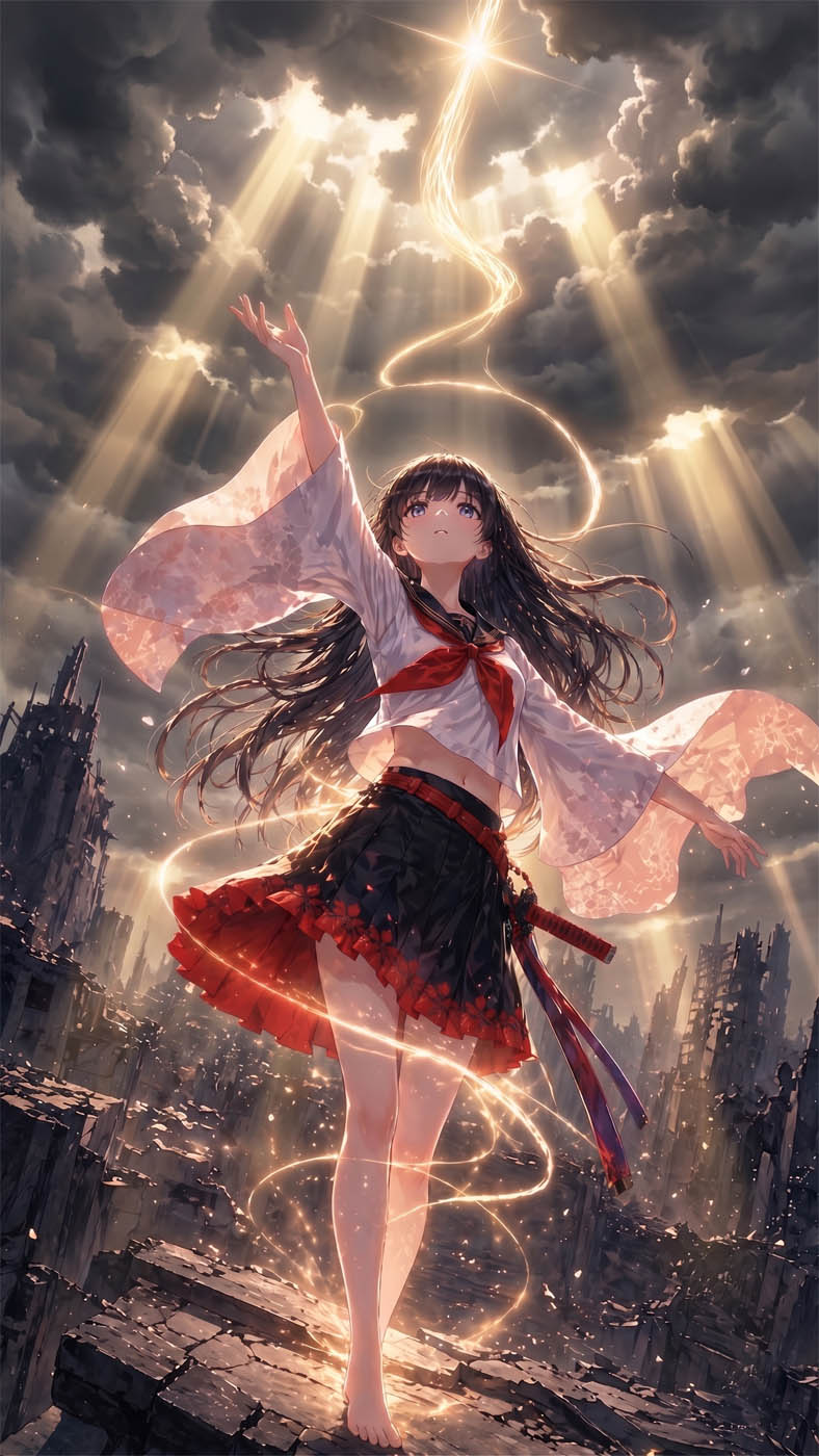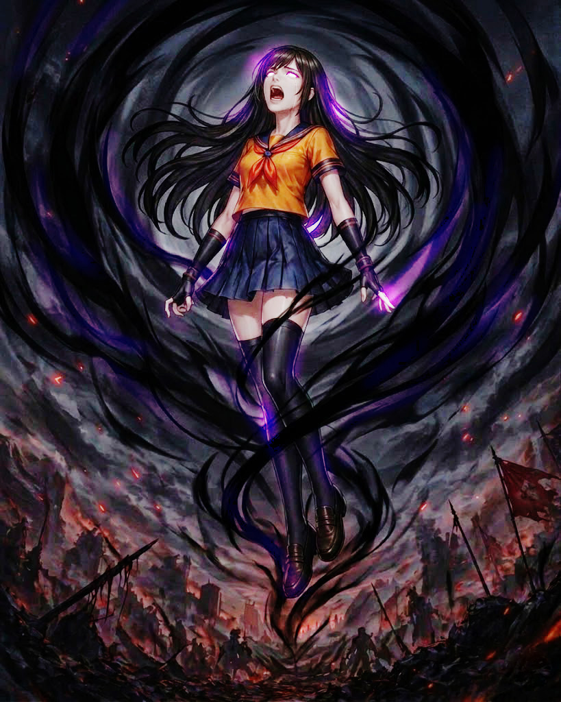 高笑いするオリジンの前で、彼女は体から真っ黒な炎を噴き出し、周囲の瓦礫を呑み込みながら、やがて空を衝くような、巨大で不気味な黒い竜巻へと変貌していった。